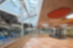 During feasibility, it was determined that additional space was required to accommodate the new use; thus, a 6,600 ft2 glass-fronted addition was designed to be visually distinct yet complementary to the original structure. Sitting below the lowest hanging ramp, the extension’s glass façade contrasts strikingly with the weight of the concrete above.